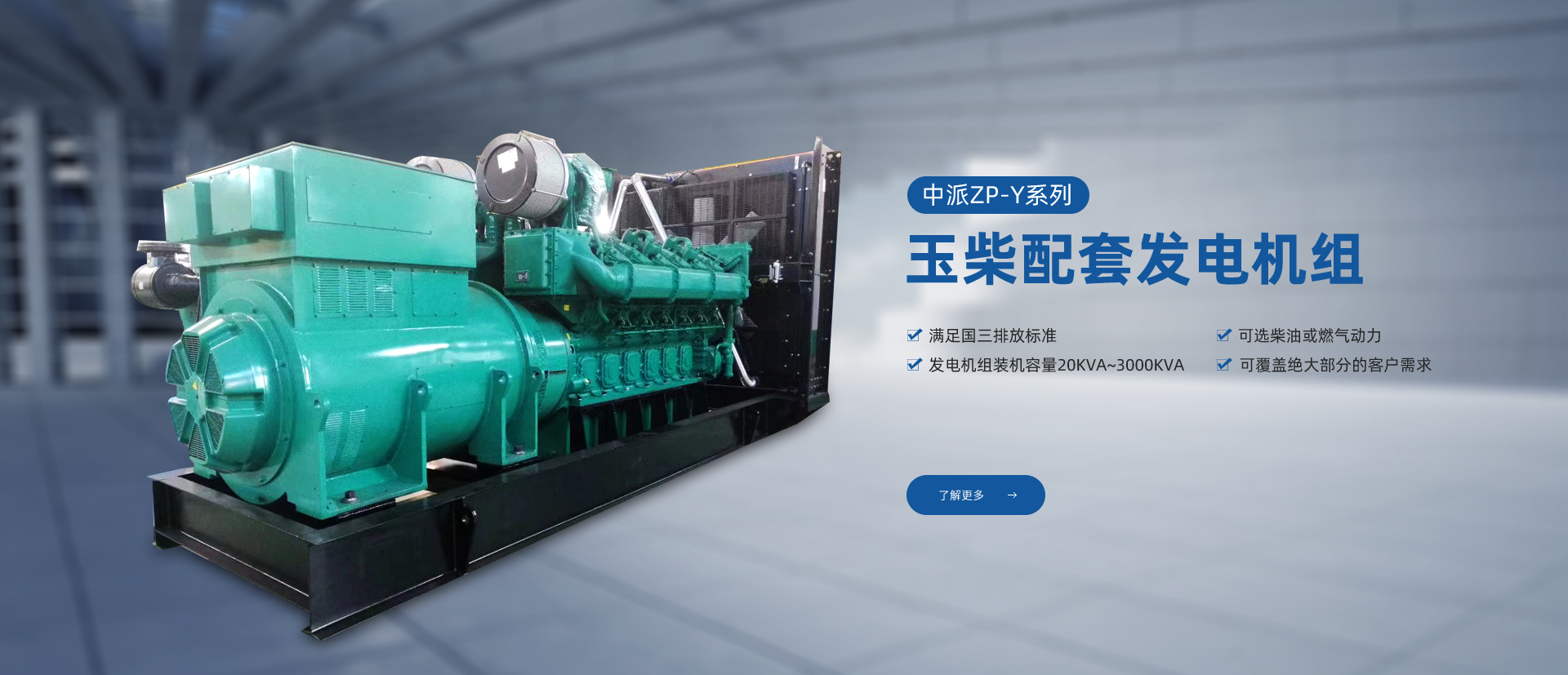 產(chǎn)品特點:中派ZP-Y系列玉柴發(fā)電機組系列機組采用廣西玉柴機器股份有限公司生產(chǎn)的YC系列發(fā)動機,滿足國三排放標(biāo)準(zhǔn),可選柴油或燃氣動力,發(fā)電機組裝機容量20KVA~3000KVA,可覆蓋絕大部分的客戶需求。